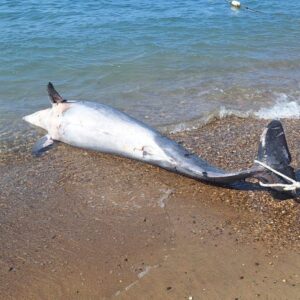 Muğla’nın Bodrum ilçesinde kıyıya vurmuş halde bulunan yetişkin yunus, çevredekiler tarafından fark edildi. Sahilde hareketsiz yatan yunusu gören vatandaşlar durumu yetkililere bildirdi.